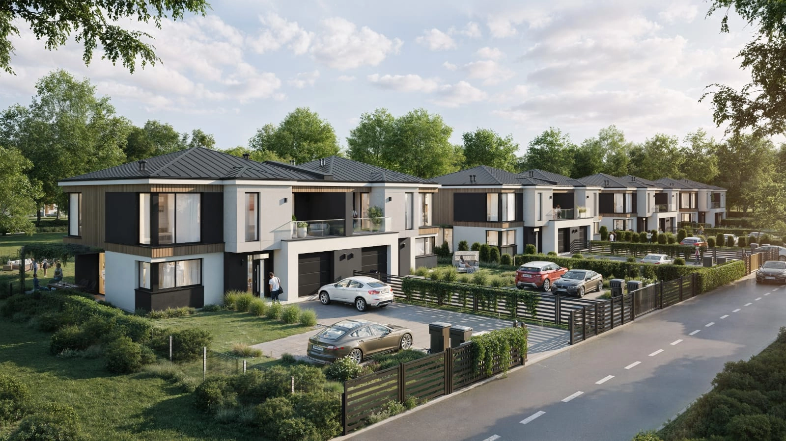 Osiedle przy ul. Sosnowej w Woli Kopcowej to kameralny projekt obejmujący cztery nowoczesne bliźniaki, czyli osiem przestronnych lokali. Każdy dom ma powierzchnię około 140 m², co zapewnia komfortową przestrzeń do życia dla całej rodziny.